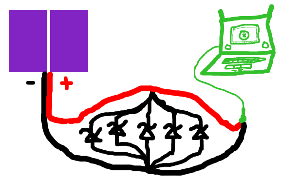 Here's a nice drawing of my Zener diodes in parallel to split the wattage, so as not to burn any out. Sure, the diodes don't have to connect directly to each other (just put them in parallel), but I wanted to reduce the amount of solder points in mine, and it's shown here. I didn't show it, but the panels are in parallel with each other too (like-colored wires tied together), and the fuse is in place, just in case. --jaffa225 07:06, 3 November 2008 (UTC)