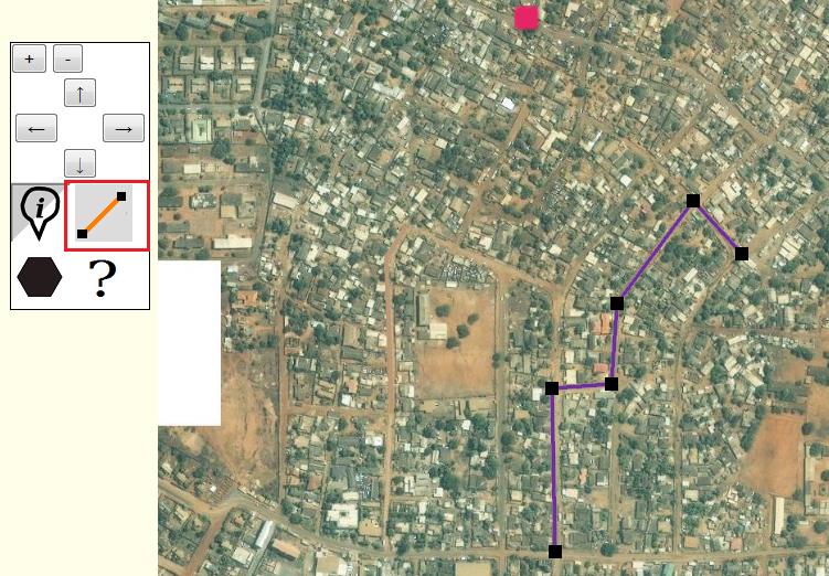 - Add lines to the map to draw roads and boundaries. Click the line button a second time to stop drawing.