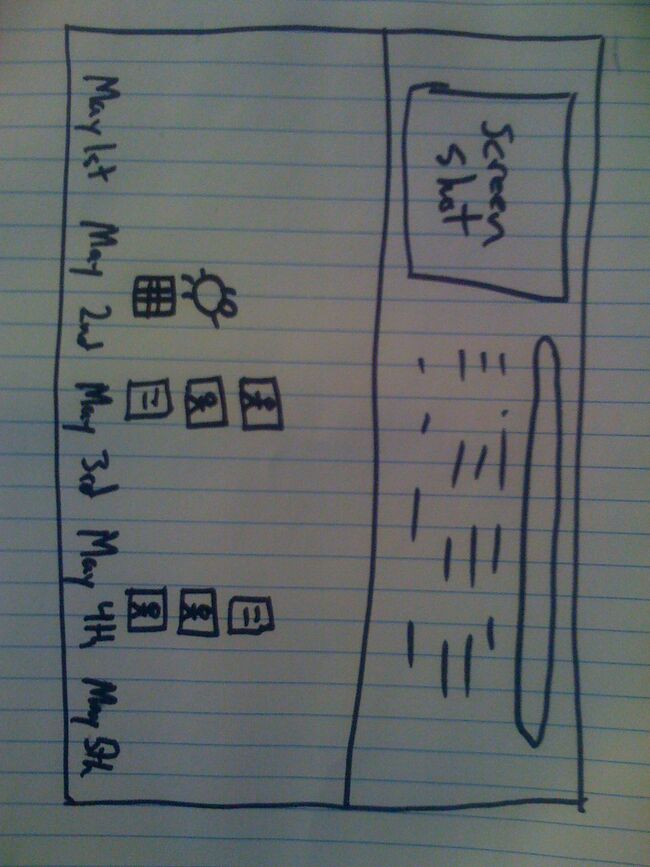 The goal of this design is to replace the Journal list view with one that allows the user to visualize time spatially, and see how their activities fit in to the picture.