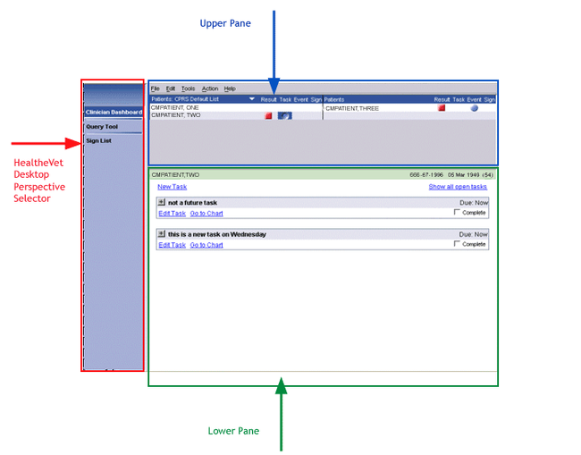 Care Management is the first application to run within the HealtheVet Desktop (the VHA's new Java application framework) and the first to offer a convenient way for healthcare providers to view on a single screen pertinent information about multiple patients. With Care Management, users can see at a glance multiple patients for whom they have items that require attention. The current distribution of Care Management offers the following four perspectives (which are similar to applications):