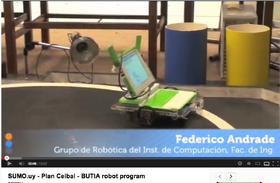 (picture on the right: OLPC XO in Peru and Uruguay. Students invented how to make a robot out of the XO. One XO is the sender/receiver/controller that can be programmed. The second XO has been foreseen of wheels, a motor, etc. A robot ... The lessons on robotica are now being broadcasted on the national OLPC TV Channel. Yes there is a national OLPC TV Channel with lessons, reports and competitions. A very vibrant community!