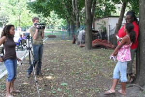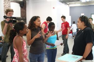 The first VOICES workshop took place June 17th in Toronto, Canada. Youth Participants met at 10am at The 519 community centre and spent the morning sharing ideas about culture and art and preparing for the afternoon video sessions with the artists. The kids were divided up into groups of 3, and were asked to choose between taking the role of videographer, interviewer, or director. They chose the artists they were most interested in working with from a list including breakdancer, painter, kung-fu master, actor/playwright/poet, music producer, musician, and hiphop MC. The groups worked together to brainstorm the questions they were interested in asking their artists as well as choosing the location of their video shoots.