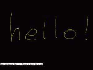This draws a grid of red boxes and begins listening for touch events. Each down or move event clears a box to green. Once all boxes are green, the test exits. Boxes also exits if 30 seconds have elapsed, or if a key is pressed.