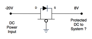 This minimalist approach does turn off Q1 when the input voltage is negative, but only if there is no voltage present on the system side. In the XO-1/1.5, where the battery voltage provides a constant 5.5 to 6.5V on the system side, Q1 is constantly on.