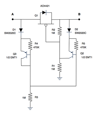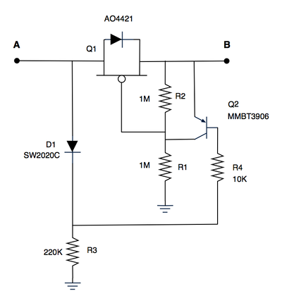 - It still fails in that once the circuit is turned on, it won't turn off until there is a significant voltage difference between the input and output.