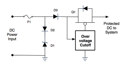 - D3, Q1, and the components of the overvoltage protection control provide function 2.