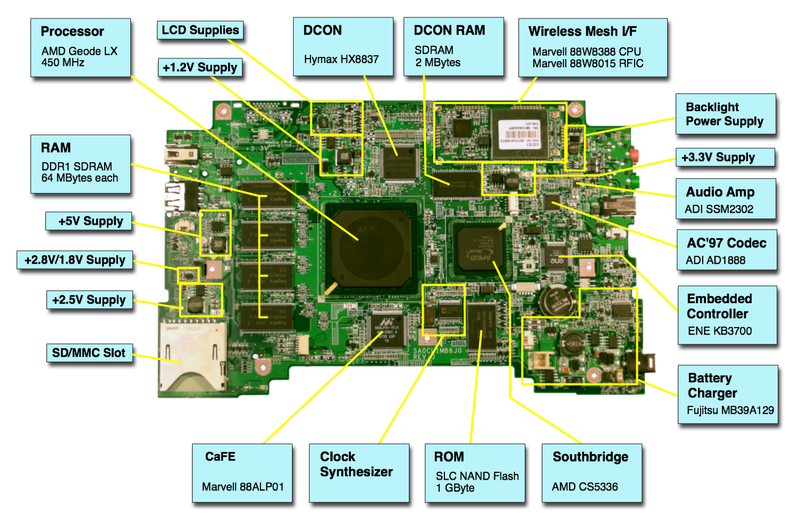This is the motherboard of a production XO-1 laptop: