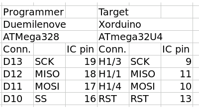 - Connect the Arduino and XOrduino together according to the table and diagram above, also +5V and ground