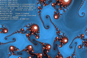 | Short description: | [[Short description::an interactive fractal zoomer that allows the user to continuously to zoom in or out of a fractal in a fluid, continuous motion.]] |