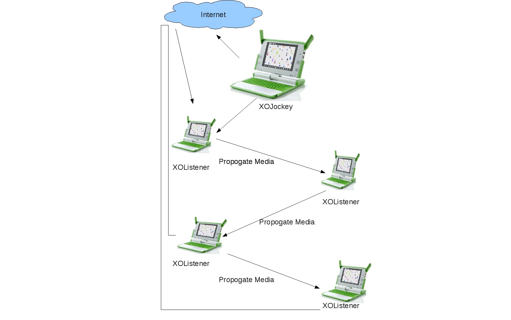 - To increase it global outreach, XOJockeys connected to the internet could also transmit radio on the web.The web/server would also allow the data to be stored for later/offline listening!
