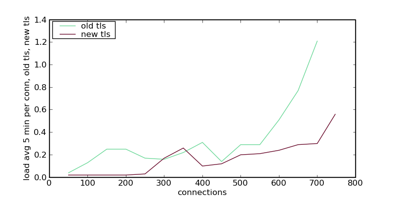 - (download) Load avg 5 min per conn-old tls-new tls.png . . 800 × 400 . . 34 KB . . Imported>Douglas . . 17:58, 21 November 2008